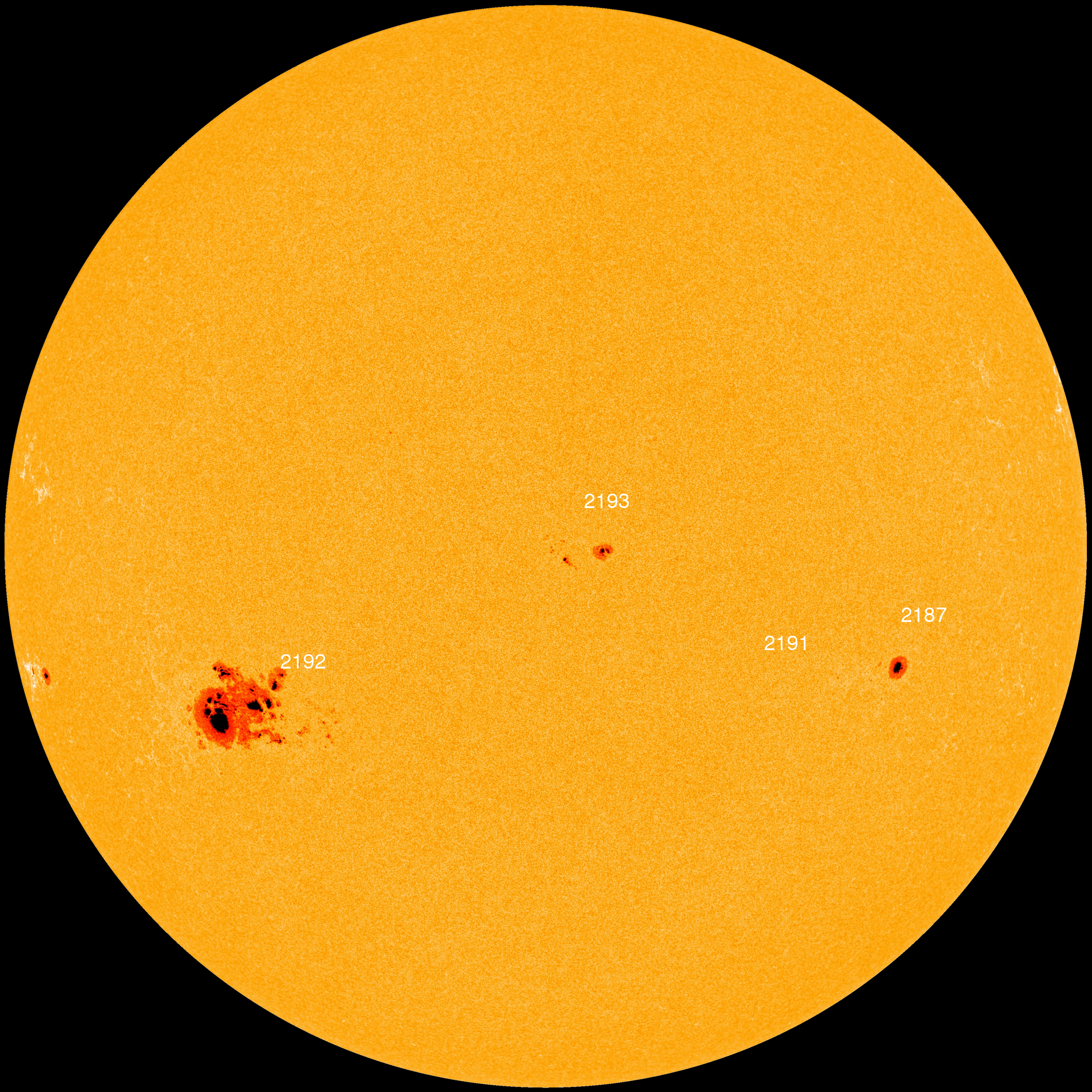 Leider habe ich kein Halpha-Scope zur Verfügung, aber gestern und vorgestern konnte ich den Fleck im Weißlicht sehen: